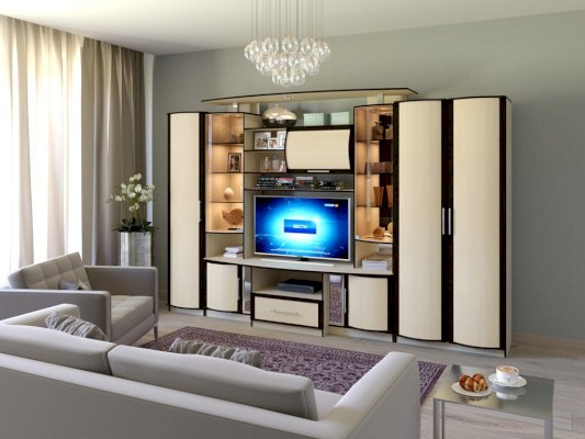 Гостиная «Кристина-3» подходит для различных типов интерьера благодаря разнообразию цветового оформления. Она позволяет оборудовать вашу квартиру с максимальным удобством и функциональностью. Сервант состоит из симметричных витрин, множества шкафов и полок, а также предусмотрена ниша для телевизора. Корпус выполнен из ЛДСП, фасады МДФ.