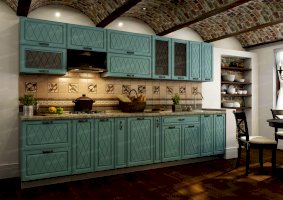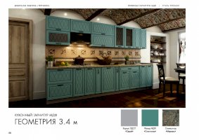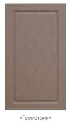Набор кухонной мебели «Геометрия» получил свое название благодаря оригинальному дизайну. Дело в том, что его фасады украшены незатейливыми симметричными узорами, состоящими из небольших ромбов. Также комплекту присущи симметрия и простота форм. У покупателей есть возможность выбирать цветовое решение: в ассортименте изделия оттенков топаз, тирамису, гранат, алмонд.