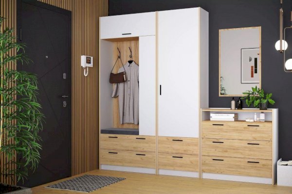 Комбинированный шкаф для одежды из новой коллекции Оттавия представлен в двух цветах на выбор – белый и антрацит. Шкаф отлично подойдет в прихожую для любого современного интерьера, как скандинавского, так и урбанистического.