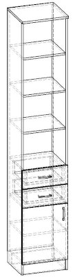 Стеллаж 1 дверь 2 ящика