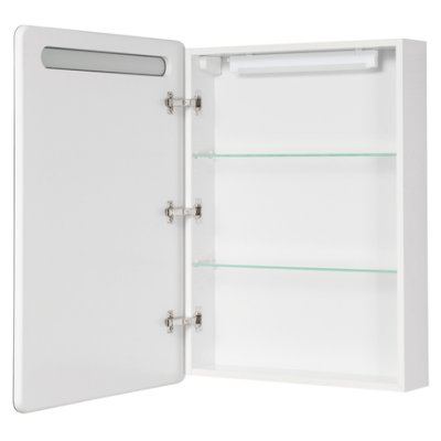 Зеркальный шкаф Америна 60 от AQUATON со встроенной светодиодной подсветкой - выбор тех, кто ценит лаконичную эстетику минимализма и исключительную практичность. Модель в современном стиле выпускается с левой или правой ориентацией. Корпус из влагостойкой ЛДСП покрыт белоснежной глянцевой краской ультрафиолетового отверждения, которая обеспечивает защиту от влаги и долгий срок службы. Глубина изделия - всего 14 см, что позволяет использовать его в качестве альтернативы привычному зеркалу. Модель комплектуется LED-светильником, расположенным на задней стенке шкафа. Внутри находятся две стеклянные полки для хранения. Петли с доводчиком позволяют открывать дверцу шкафа плавно и практически бесшумно.