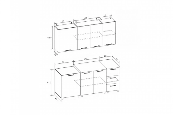 Высота верхних шкафов: 685 мм