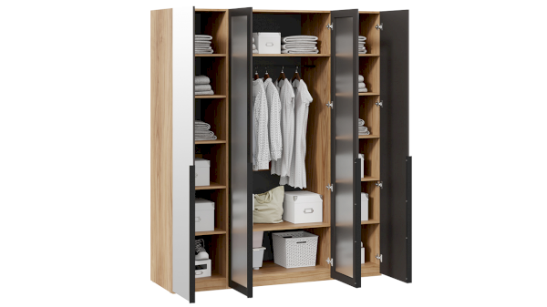 Шкаф для одежды 580 с 2 зеркальными и 2 стеклянными дверями Порто СМ-393.07.115 (ТриЯ)