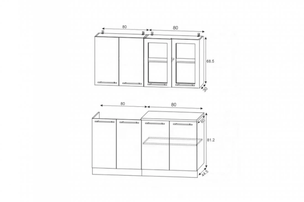 Высота верхних шкафов: 685 мм