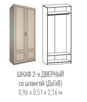 Шкаф 2-х створчатый "Афина" со штангой, мод.6