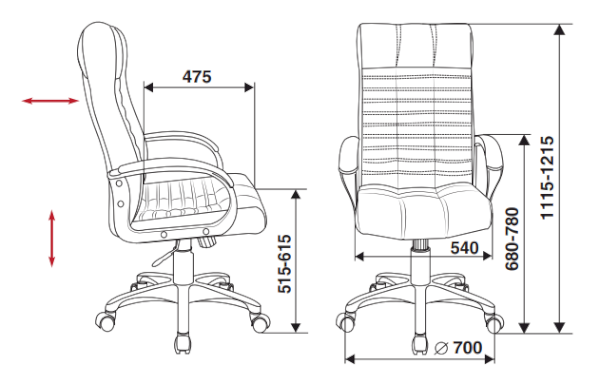 Высота с подлокотниками: 680-750