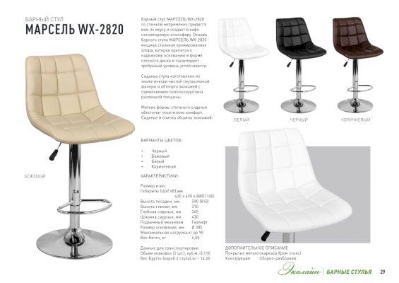 Барный стул МАРСЕЛЬ WX-2820 со спинкой непременно придется вам по вкусу и создает в кафе неповторимую атмосферу. Основа барного стула МАРСЕЛЬ WX-2820 - мощная стальная хромированная опора, которая крепится к надежному основанию в форме плоского диска и гарантирует требуемый уровень устойчивости