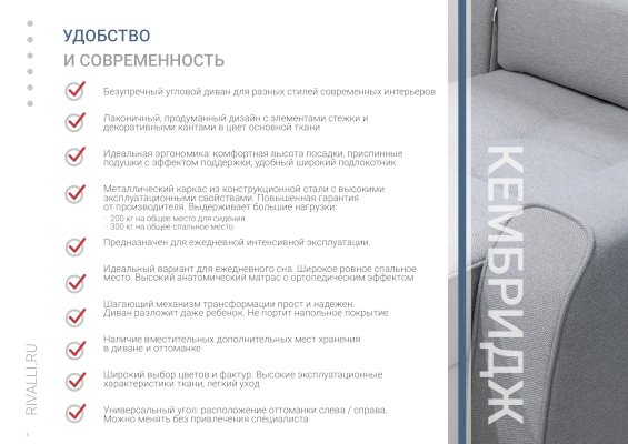 Угловой диван Кембридж (Rivalli) - за 140 972 руб. в Дедовске. Купите на сайте dedovsk.onlinemarketmebeli.ru или по телефону 8(800)505-30-63 уже сегодня! Уточнить наличие, комплектацию, актуальную цену можно бесплатно у менеджера ежедневно. Закажите Угловой диван Кембридж (Rivalli) до конца акции! Доступна покупка в кредит, рассрочку. Доставим со склада или на заказ.