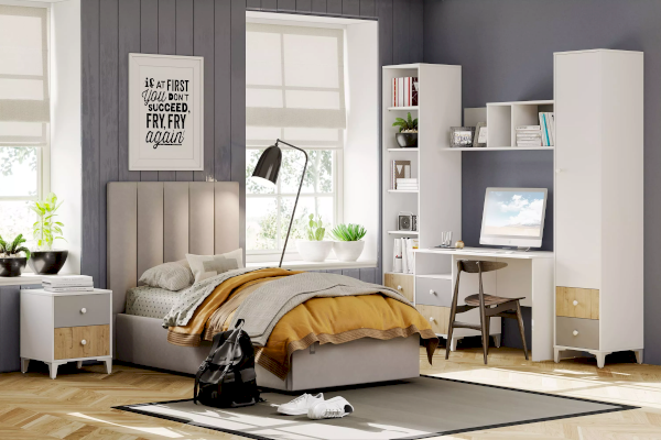 Прекрасным дополнением к интерьеру спальни станет прикроватная тумба из коллекции «Морти». Лаконичные формы, прямые линии и натуральные светлые природные оттенки – отличительные черты коллекции. Главной изюминкой модели являются контрастные выдвижные ящики, высокие опоры и минималистичные ручки.