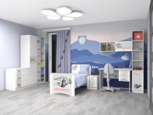 Цвет: Белый с фотопечатью Машинки