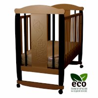 Кроватка декорирована фрезерным рисунком "Слоник". Уникальные фрезерные рисунки размером от 50 см на обеих спинках.