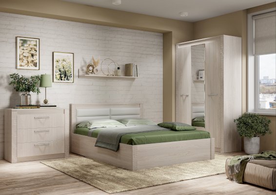 Трехстворчатый шкаф Монако относится к одноименной модульной серии. Модель не имеет вычурного декора и лишних деталей, выполнена в сдержанном и лаконичном стиле. Комплектация шкафа представляет собой несколько полок для хранения вещей в сложенном виде, а также отделение с хромированной штангой для одежды на вешалках. Для создания модели используется качественная ЛДСП цвета белого ясеня. Центральная створка является полностью зеркальной, две остальные дополнены изящными ручками.