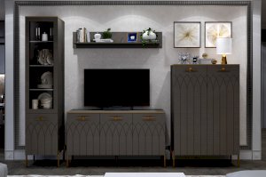 Большой комод на ножках с тремя отделениями для хранения – практичное решение для современной гостиной. Каждое отделение разделено полкой ЛДСП для хранения книг, журналов, предметов быта или домашнего текстиля. Благодаря ширине 1370 мм модуль может быть использован как комод под телевизор с большой диагональю.