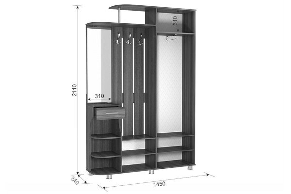 Прихожая «Барселона-2» обладает испанским характером – она стильная и добродушная. Вы можете разместить одежду в шкафу с выдвижной штангой или на вешалке с крючками, обувь сложить в нижний шкаф, шляпки на специальную верхнюю полку, а мелочи в выдвижной ящик и открытые полки. Есть зеркало.