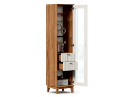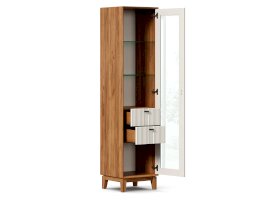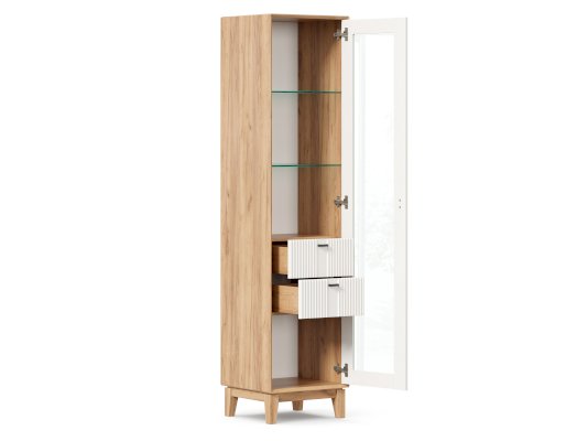 • За сборными распашными дверями со стеклом две стационарные горизонтальные перегородки и две съемные стеклополки.