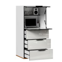 • За одной откидной и одной подъёмной дверьми отделение с полкой из ЛДСП. Полка стационарная, укороченная. В задней стенки отверстие для вывода проводов и заглушка к нему