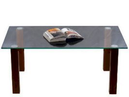 Журнальный стол - стеклянная прямоугольная столешница, ножки деревянные с фетровыми подпятниками.